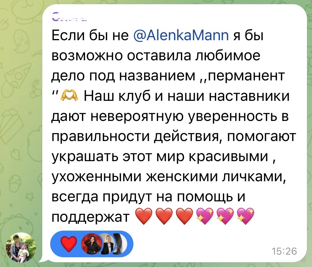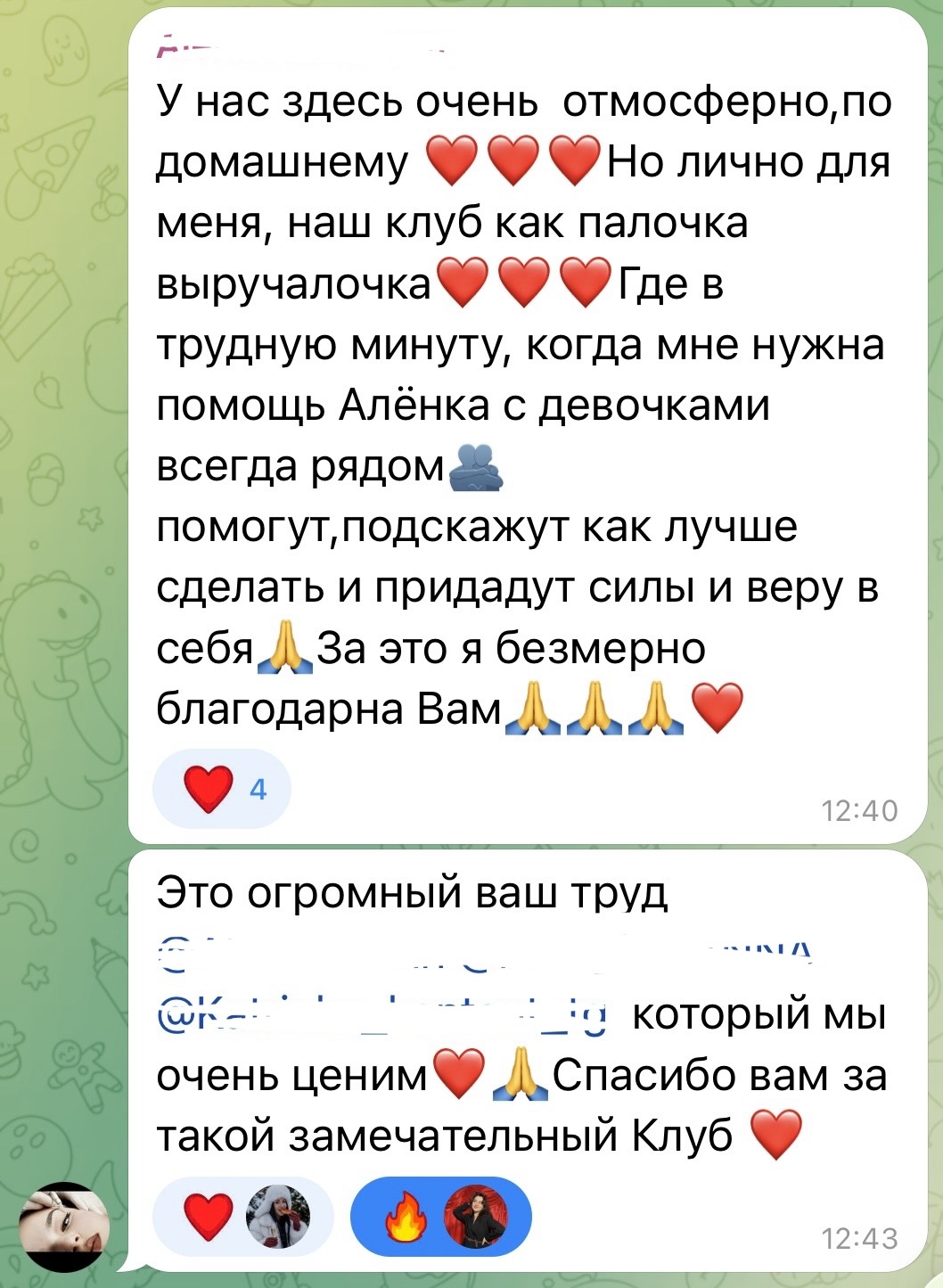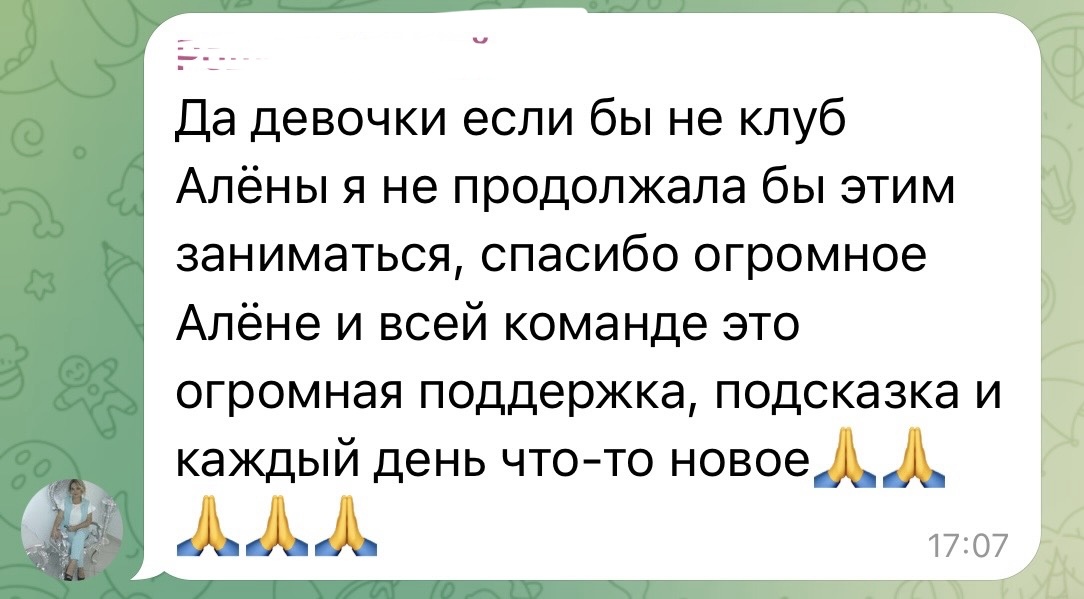 В клубном чате с вами будет общаться куратор-тренер (без разборов от Алёны)