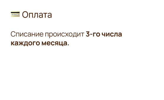 👉 Это правило удобно тем, что участник не теряет материалы месяца входа и сразу может начать обучение, а система списаний остаётся прозрачной и одинаковой для всех.