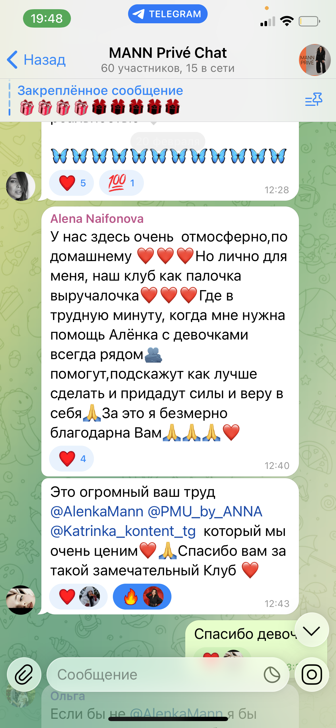 В клубном чате вам будет лично отвечать Алёна и куратор,