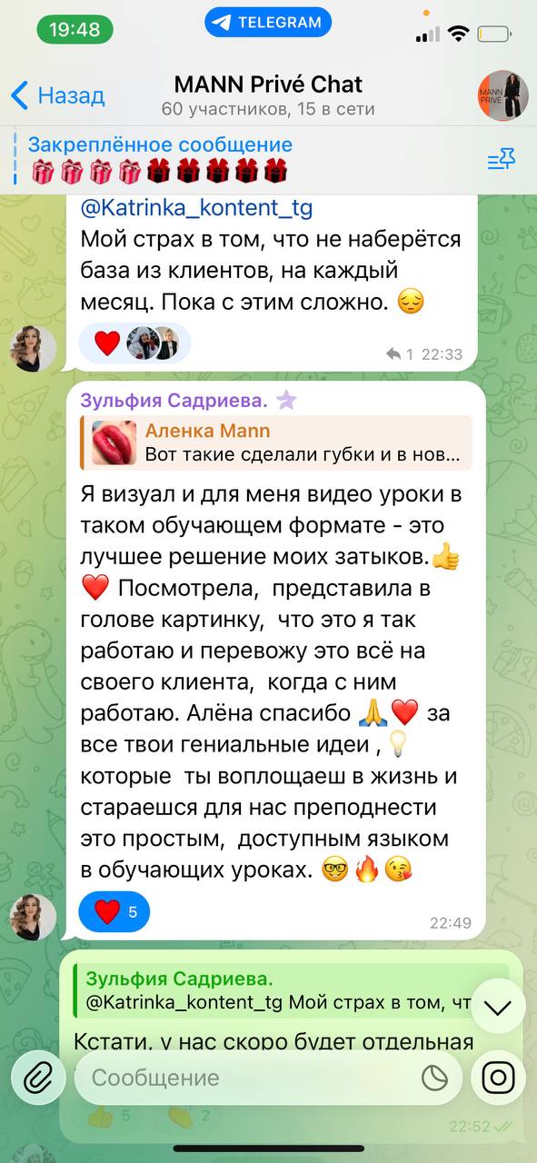 В клубном чате с вами будет общаться куратор-тренер (без разборов от Алёны)