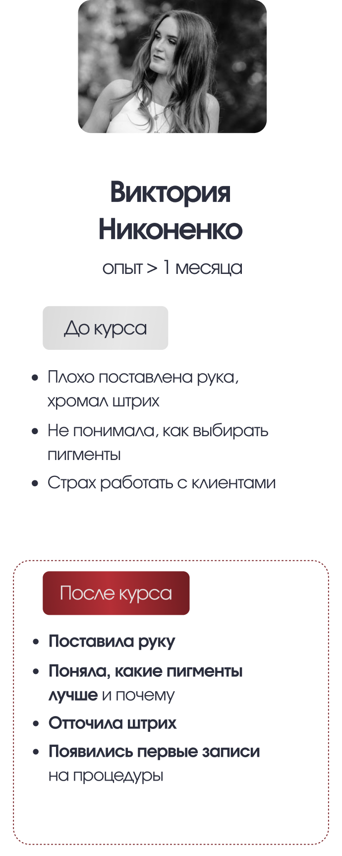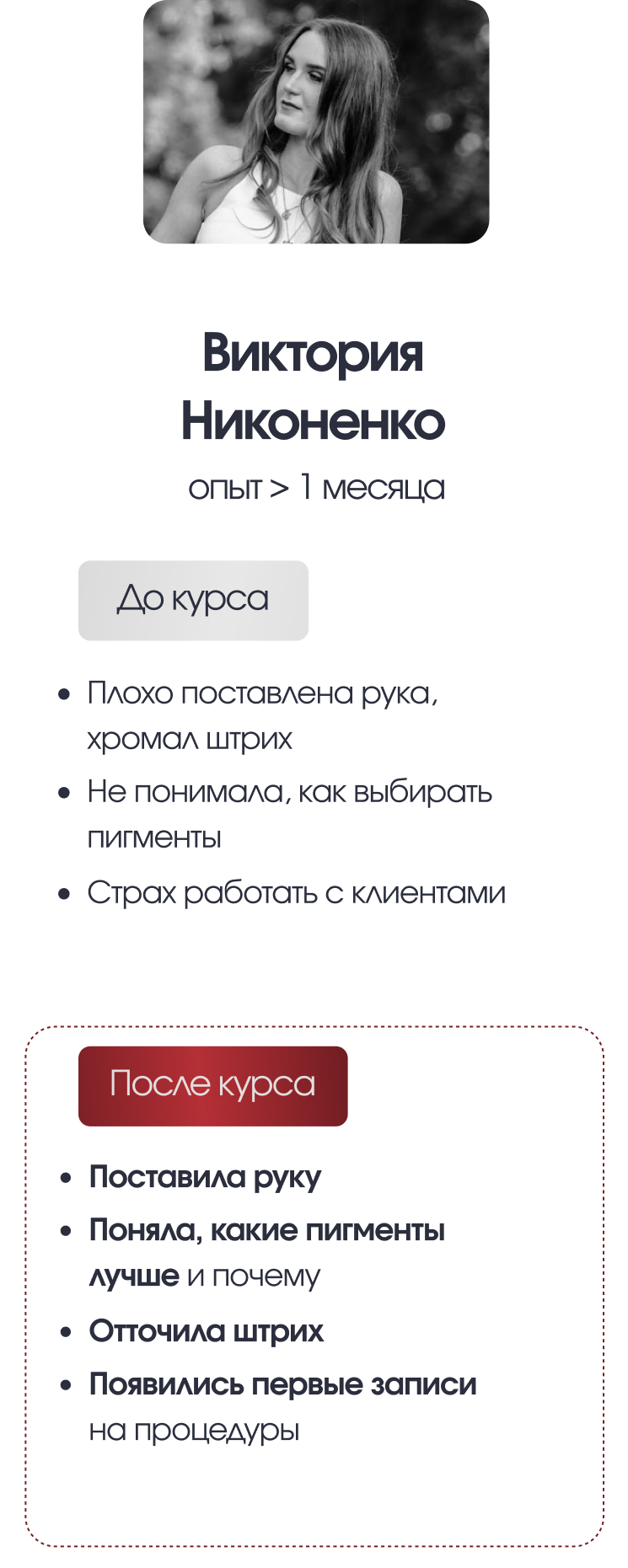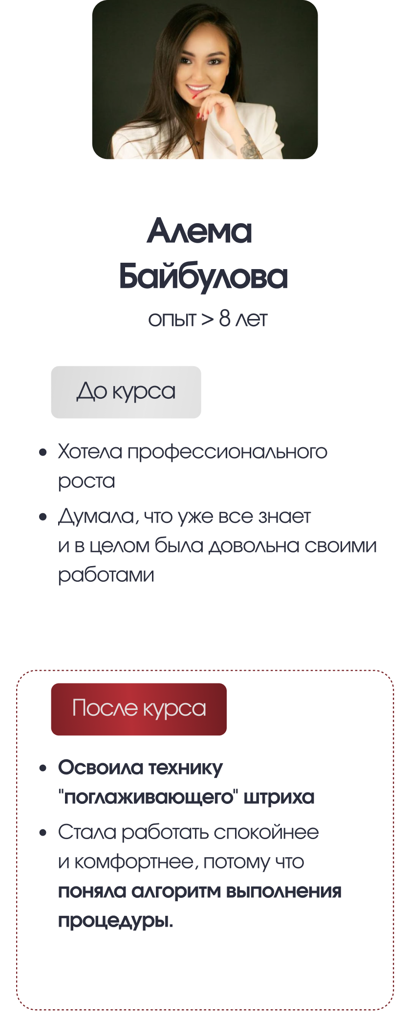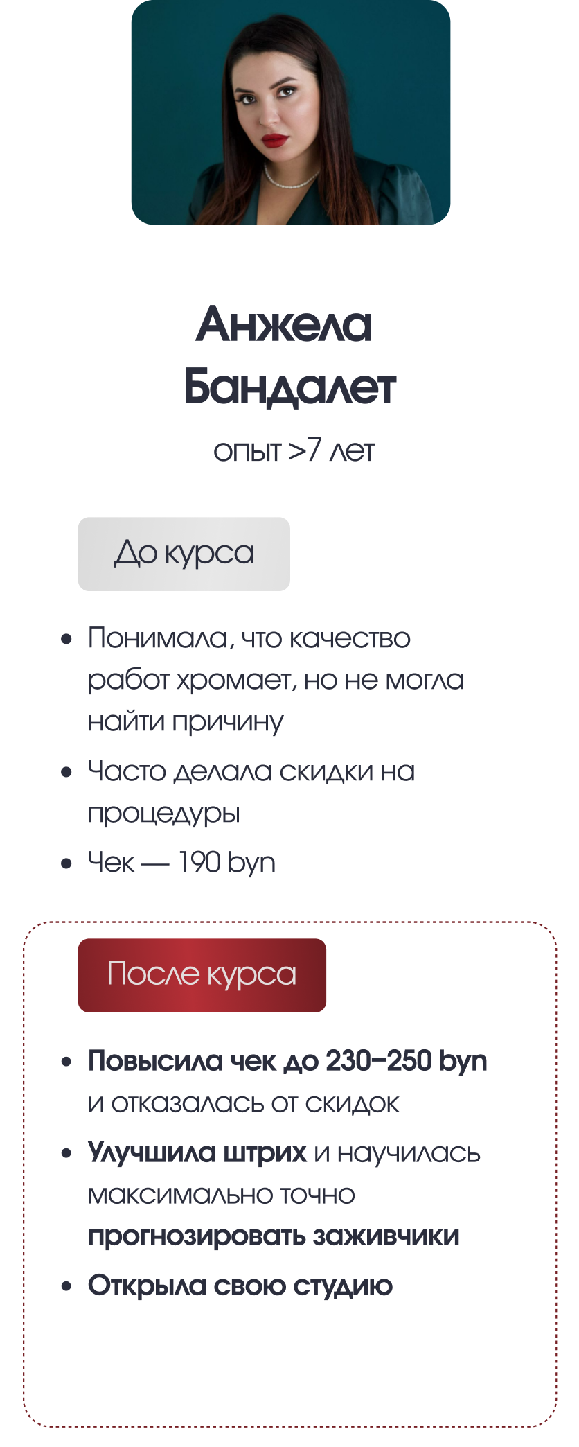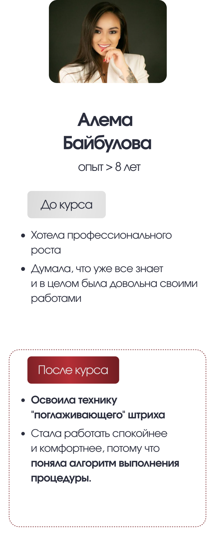 И тогда я поняла, что мне нужен четкий проверенный алгоритм: как проводить процедуру от начала до конца, правильно подбирать формы/аппарат/иглу/пигмент/, чтобы работы были качественными и я чувствовала себя уверенно.